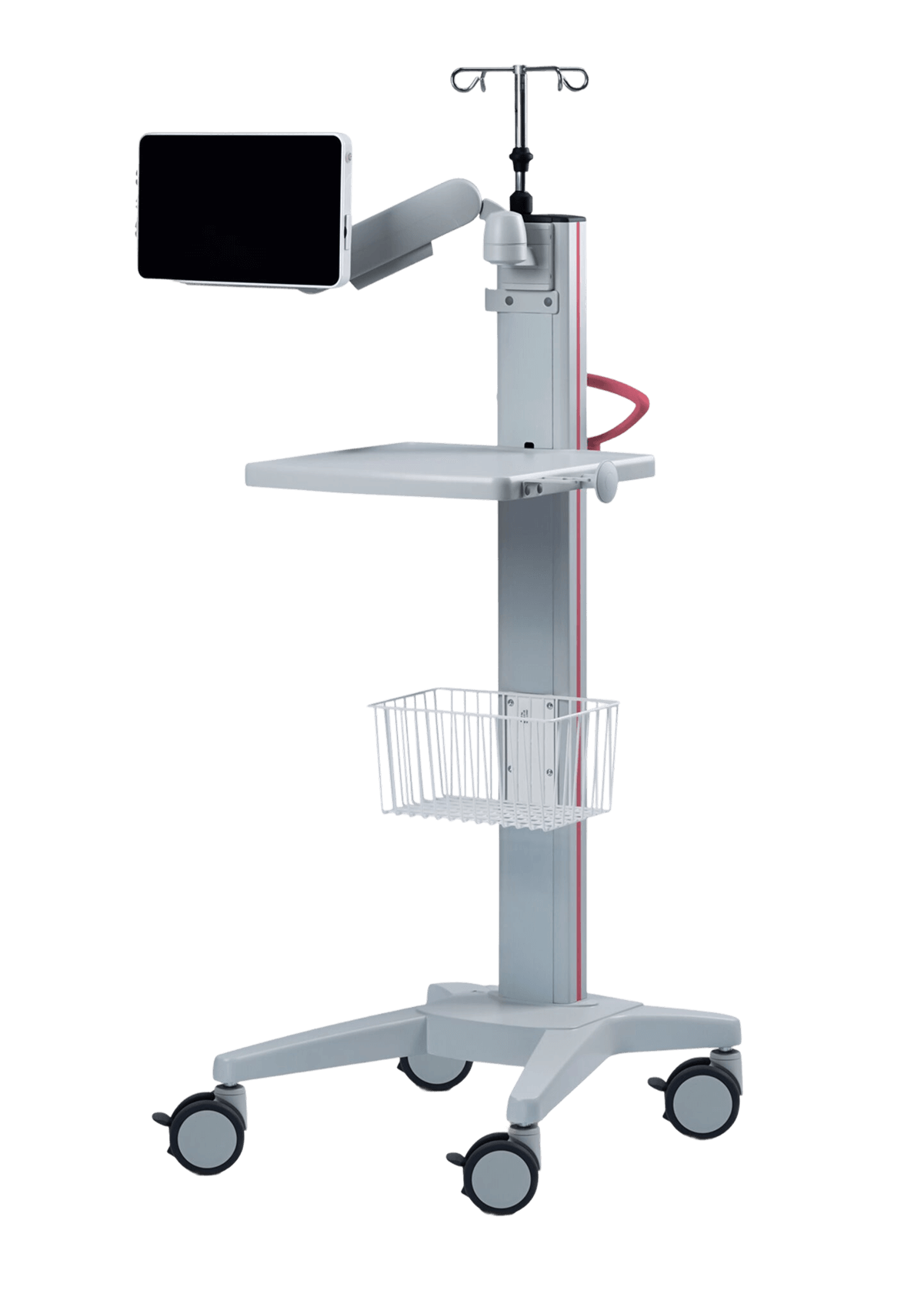 Kompaktowy, lekki i zwrotny wózek, idealny do bronchoskopii oraz placówek z ograniczoną przestrzenią. Wyposażony w jedną półkę i koszyk na akcesoria, zapewnia szybki dostęp do sprzętu i ułatwia organizację miejsca pracy. Doskonały wybór dla mobilnych zespołów medycznych. - aCart™ Plus