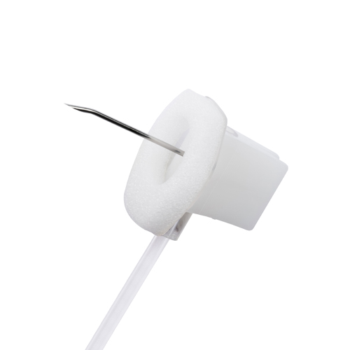 Stabilne mocowanie zmniejsza ruchy igły i podrażnienia skóry.