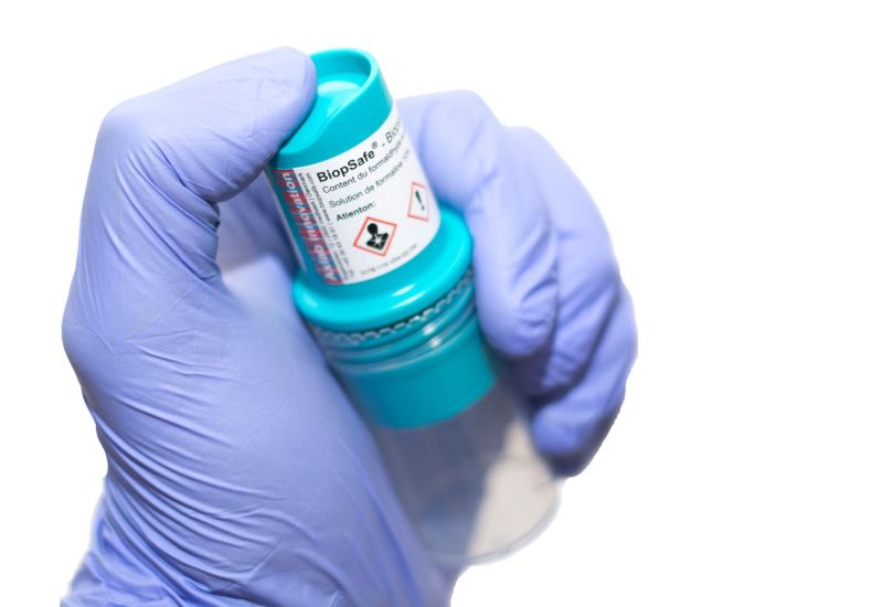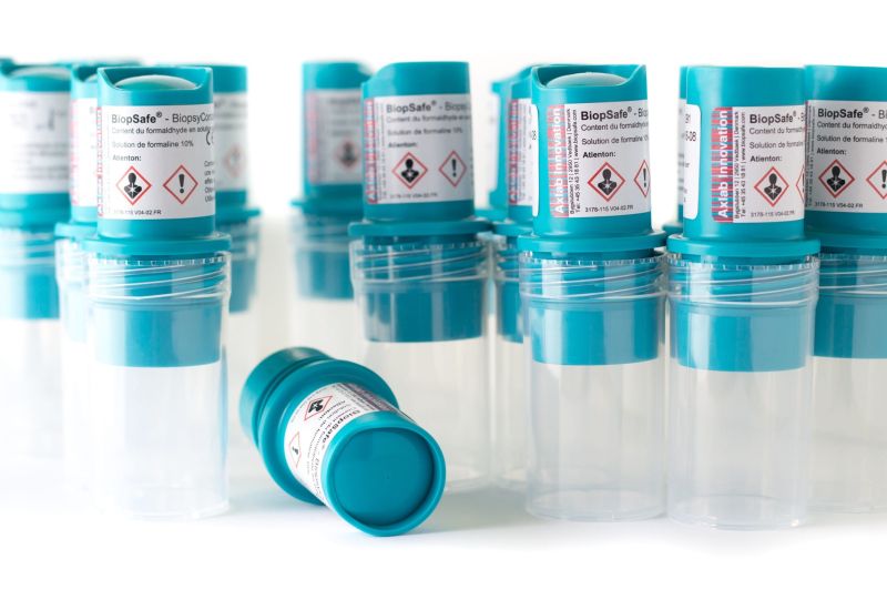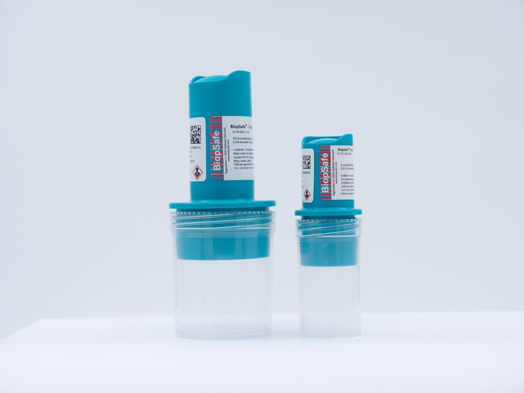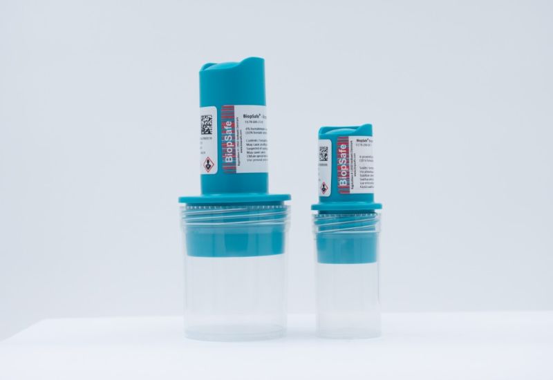 Szybkie i bezpieczne utrwalenie materiału biologicznego bez kontaktu z formaliną. Po zamknięciu pojemnika wystarczy wcisnąć znajdujący się w zakrętce przycisk, aby uwolnić utrwalacz. Rozwiązanie proste, powtarzalne i gotowe do użycia w każdej placówce.