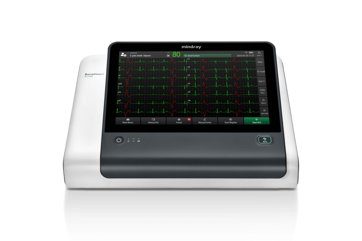 Nowoczesny elektrokardiograf zapewniający szybkie i dokładne wyniki EKG. Dzięki innowacyjnym rozwiązaniom technologicznym i integracji z systemami szpitalnymi, wspomaga diagnostykę i codzienną pracę personelu w każdej sytuacji klinicznej.