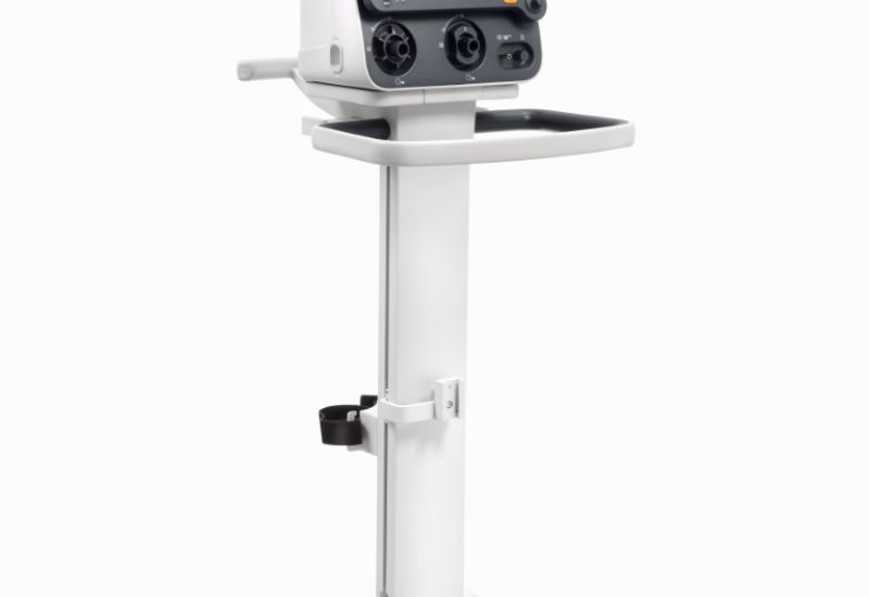 Kompaktowa budowa, łatwy demontaż z podstawy jezdnej i akumulator działający do 6 godzin umożliwiają transport wewnątrz szpitala.